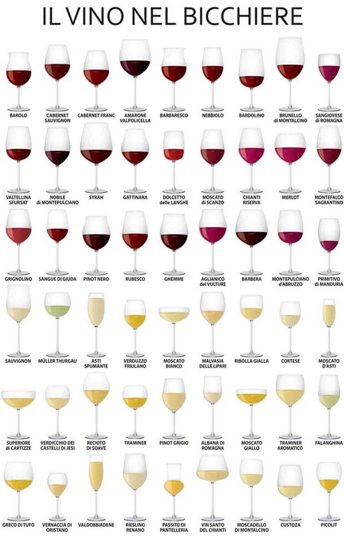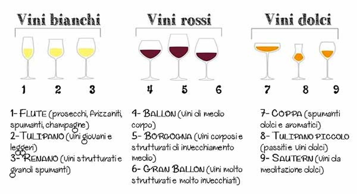 Si sa che ogni vino ha il suo bicchiere ideale, che risalta le caratteristiche organolettiche e ne migliora la degustazione. Sebbene quotidianamente si usino pochi bicchieri, in realtà ne esistono tantissimi tipi.