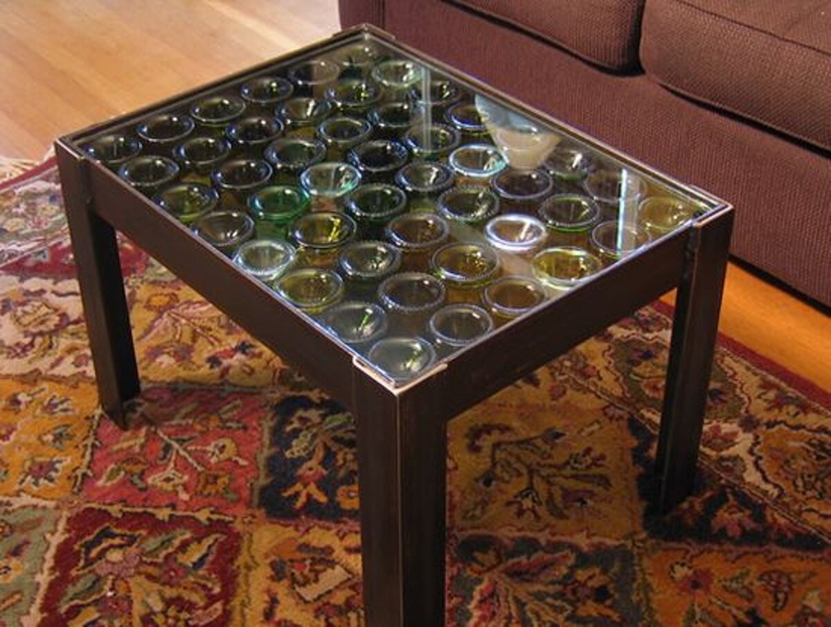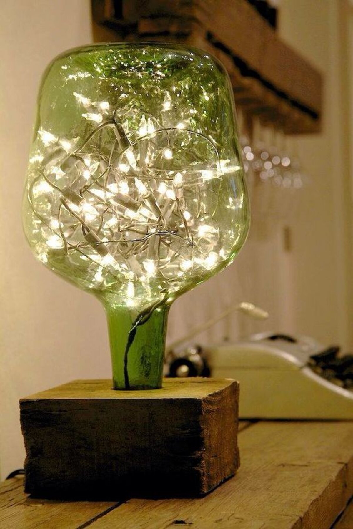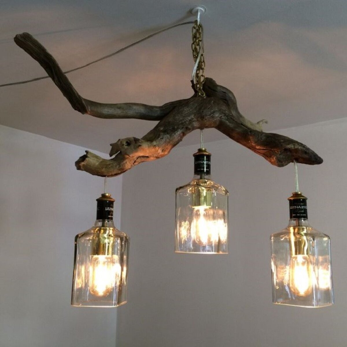 Tagliate o no, le bottiglie di vetro possono essere impiegate per la realizzazione lampade e lampadari molto originali.